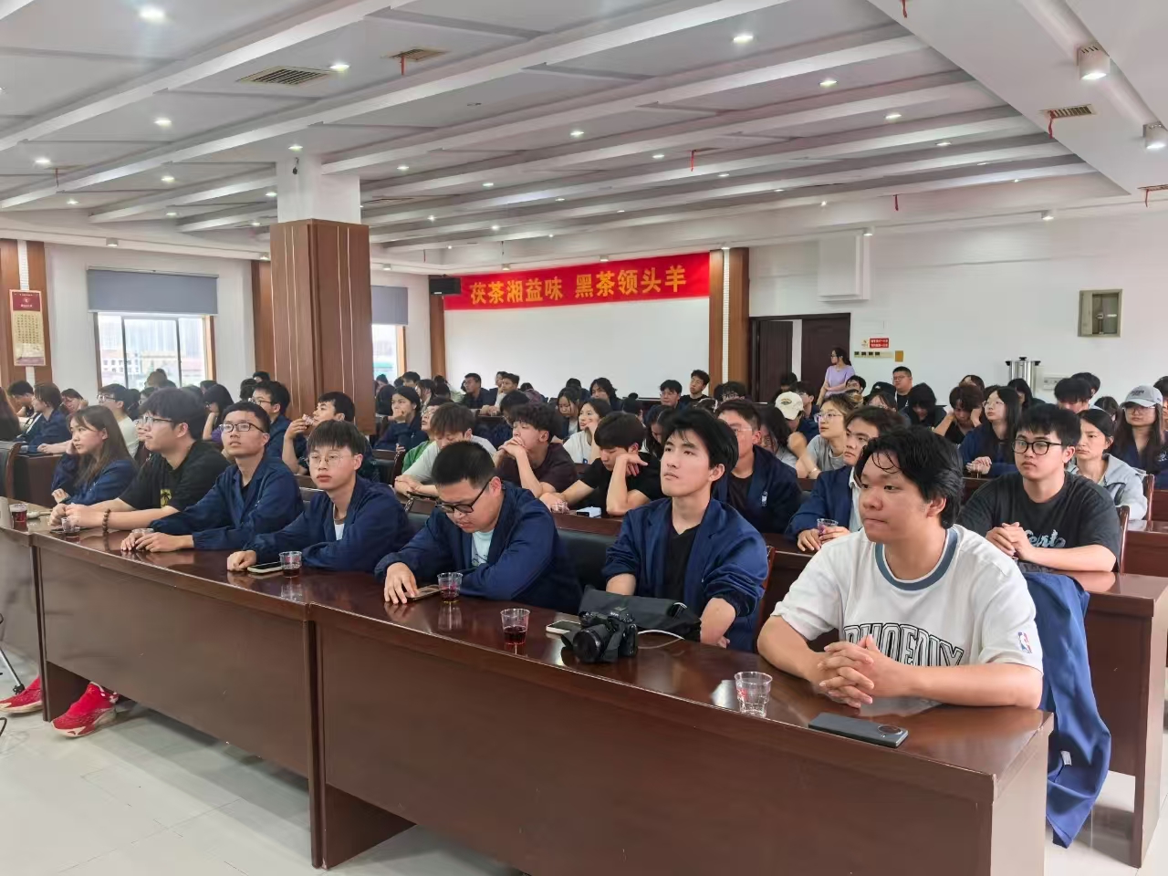 隨后的專題講座中,國家級非遺傳承人劉杏益大師結(jié)合近四十年實踐經(jīng)驗,深入解讀了茯茶“發(fā)花”核心工藝的科學(xué)原理與歷史價值,分享了標準化生產(chǎn)突破、健康功效研究等前沿成果。他強調(diào),青年人才的參與和現(xiàn)代科技的賦能,是推動茯茶技藝活態(tài)傳承、實現(xiàn)產(chǎn)業(yè)可持續(xù)發(fā)展的關(guān)鍵,并鼓勵同學(xué)們以創(chuàng)新思維為傳統(tǒng)行業(yè)注入新活力。