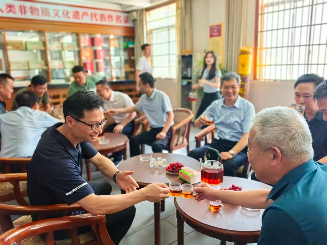 5月21日,新疆維吾爾自治區供銷合作社聯合社黨組成員、理事會副主任王貴勇、中華全國供銷合作總社人事部副部長、自治區供銷社政策法規處處長何賢志,率吐魯番市供銷社黨組書記、理事會主任魏學光,高昌區供銷社黨組書記、理事會主任王朝陽,鄯善縣供銷社黨組書記、理事會主任陳帥,托克遜縣供銷社黨組書記、理事會主任李長紅等調研組一行,在湖南省供銷合作總社二級巡視員趙勁松、省茶業集團紀委書記、工會主席褚世炯等領導陪同下,赴益陽茶廠有限公司調研邊銷茶產銷情況。雙方圍繞邊疆民生茶供應展開深入交流,共同續寫湘疆兩地七十載茶業情緣。