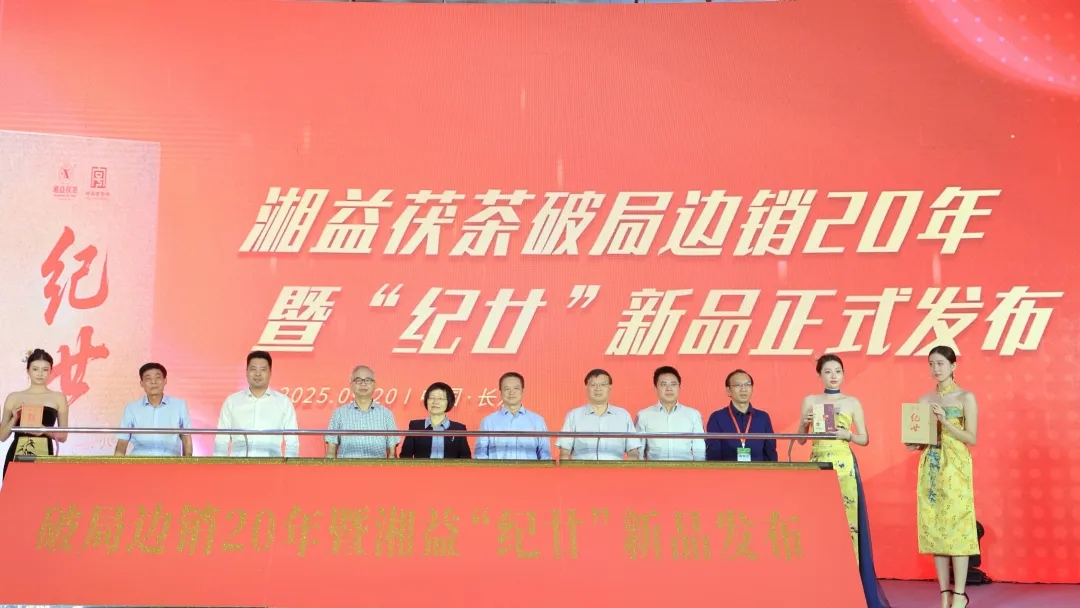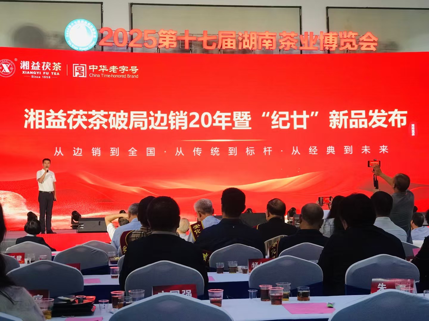 9月20日,在第十七屆湖南茶業博覽會安化黑茶品牌推介活動隆重舉行之際,湘益茯茶新品發布儀式成為活動焦點。本次推介會由劉仲華院士工作站、湖南省茶業協會、益陽市農業農村局、益陽市工商聯、安化縣人民政府特別支持,益陽市茶業協會、安化縣茶業協會主辦。益陽茶廠重磅推出的"紀廿"新品,以其卓越品質和創新理念,為茯茶市場注入全新活力。